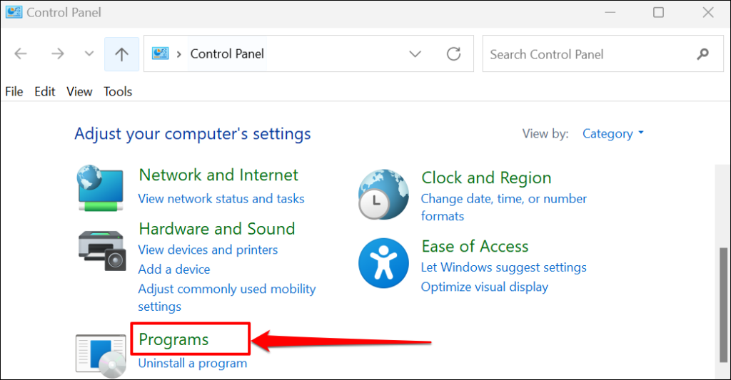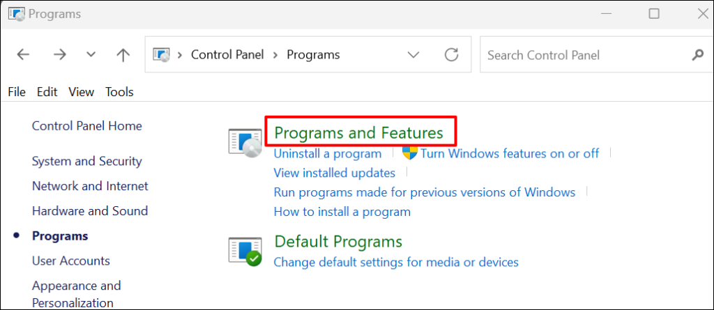 - Open the Windows Control Panel and select Programs.