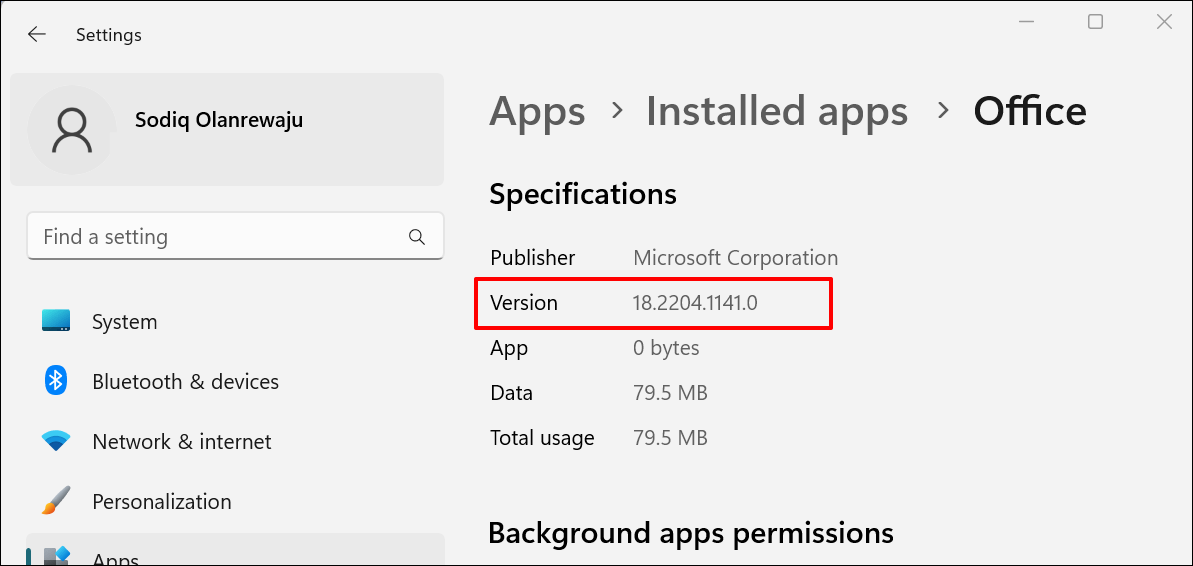 - You’ll find the Microsoft Office app version right below its name.