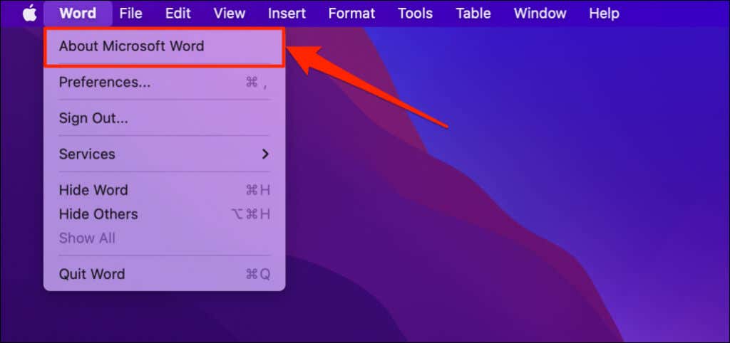 - Open a Microsoft Office app on your Mac and select the product name on the menu bar.