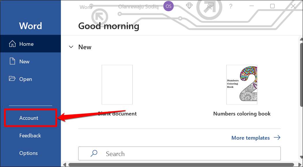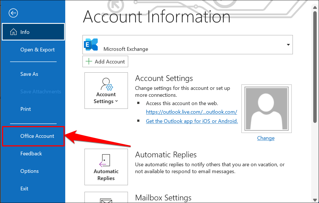 - Select Office Account on the sidebar.