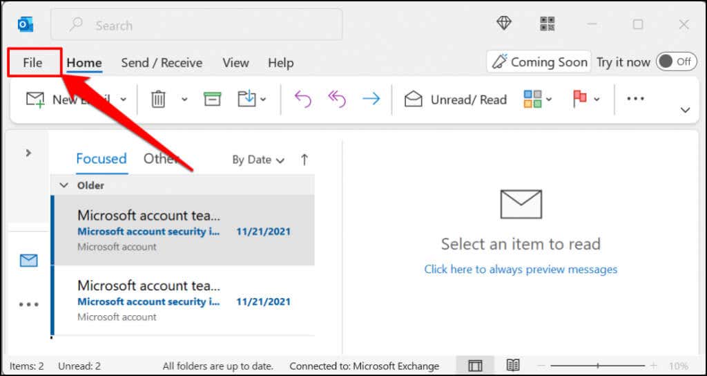 - Select File in the top-left corner of the app window.