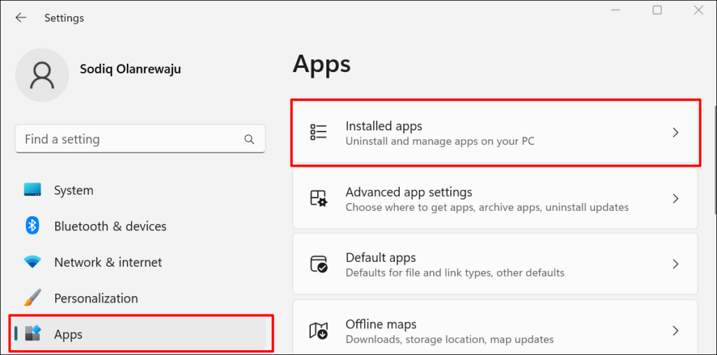 - Go to Settings > Apps and select Installed apps.